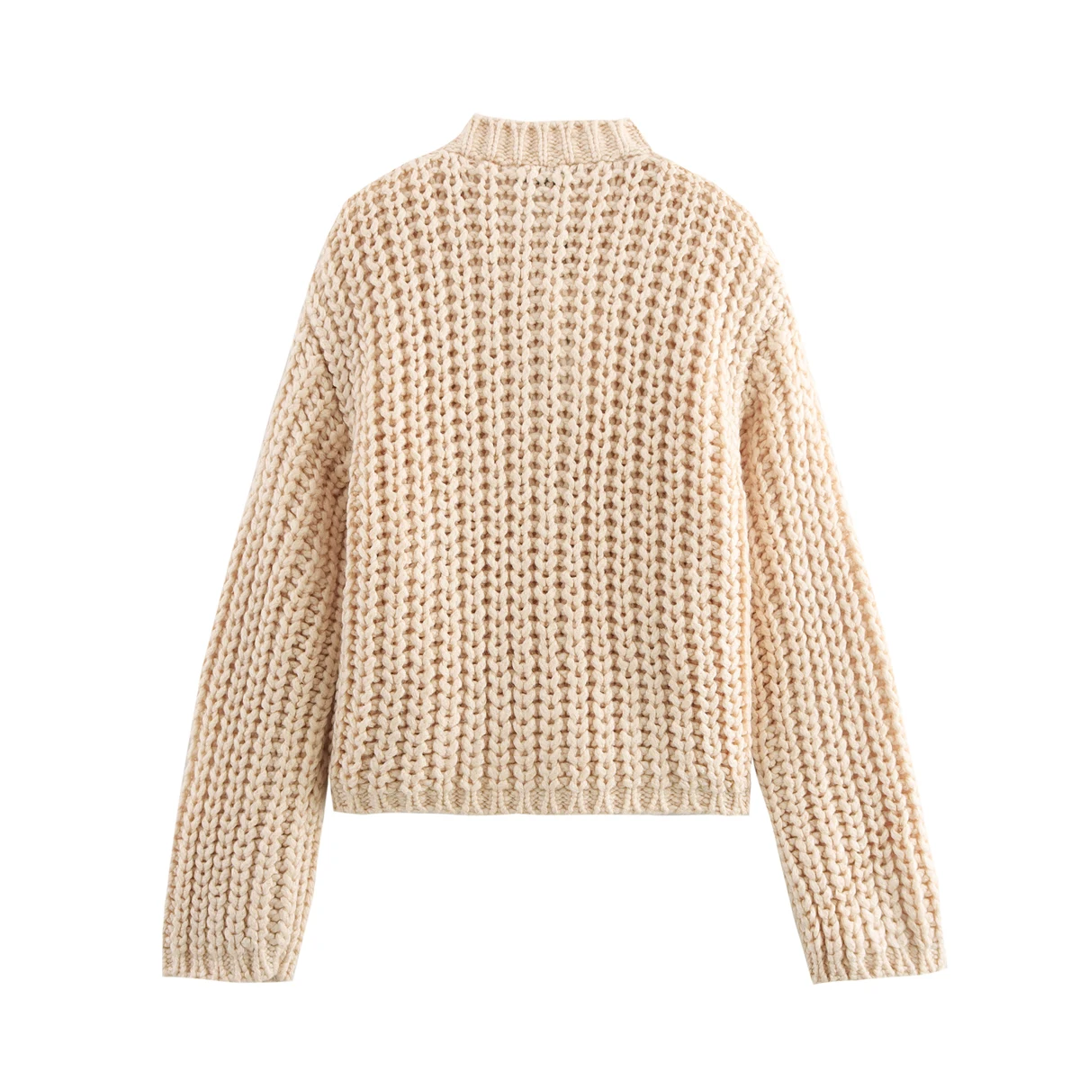 Autumn Women's Casual Solid Color Front Button Knitted Sweater Fall Golden Button Up Crop Cardigan Thick Cardigan With Pockets