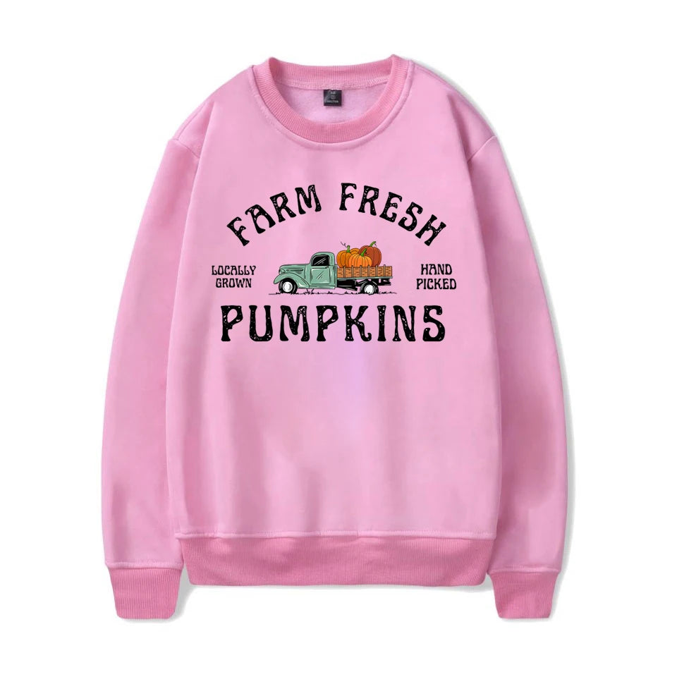 Fashion Fall Pumpkin Sweatshirt Farm Fresh Pumpkins Sweatshirts For Women Autumn Winter Crew Neck Pullovers Ladies Casual Tops