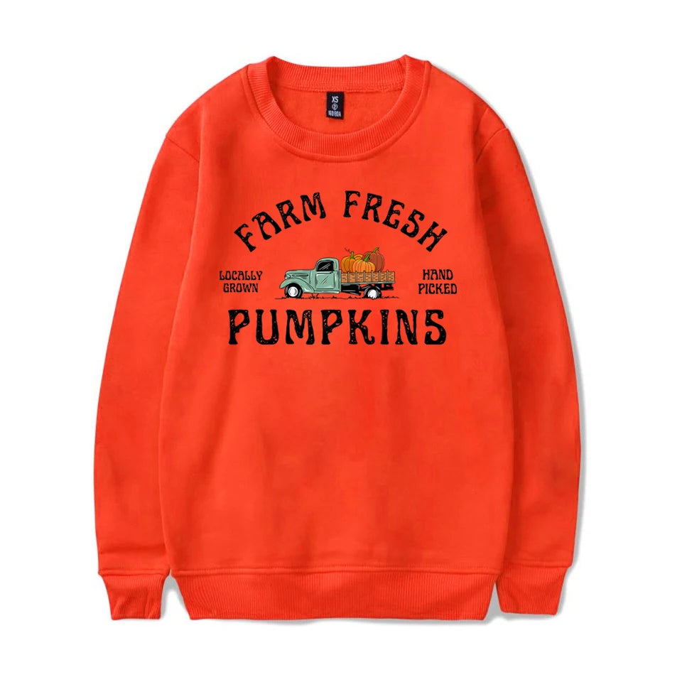 Fashion Fall Pumpkin Sweatshirt Farm Fresh Pumpkins Sweatshirts For Women Autumn Winter Crew Neck Pullovers Ladies Casual Tops