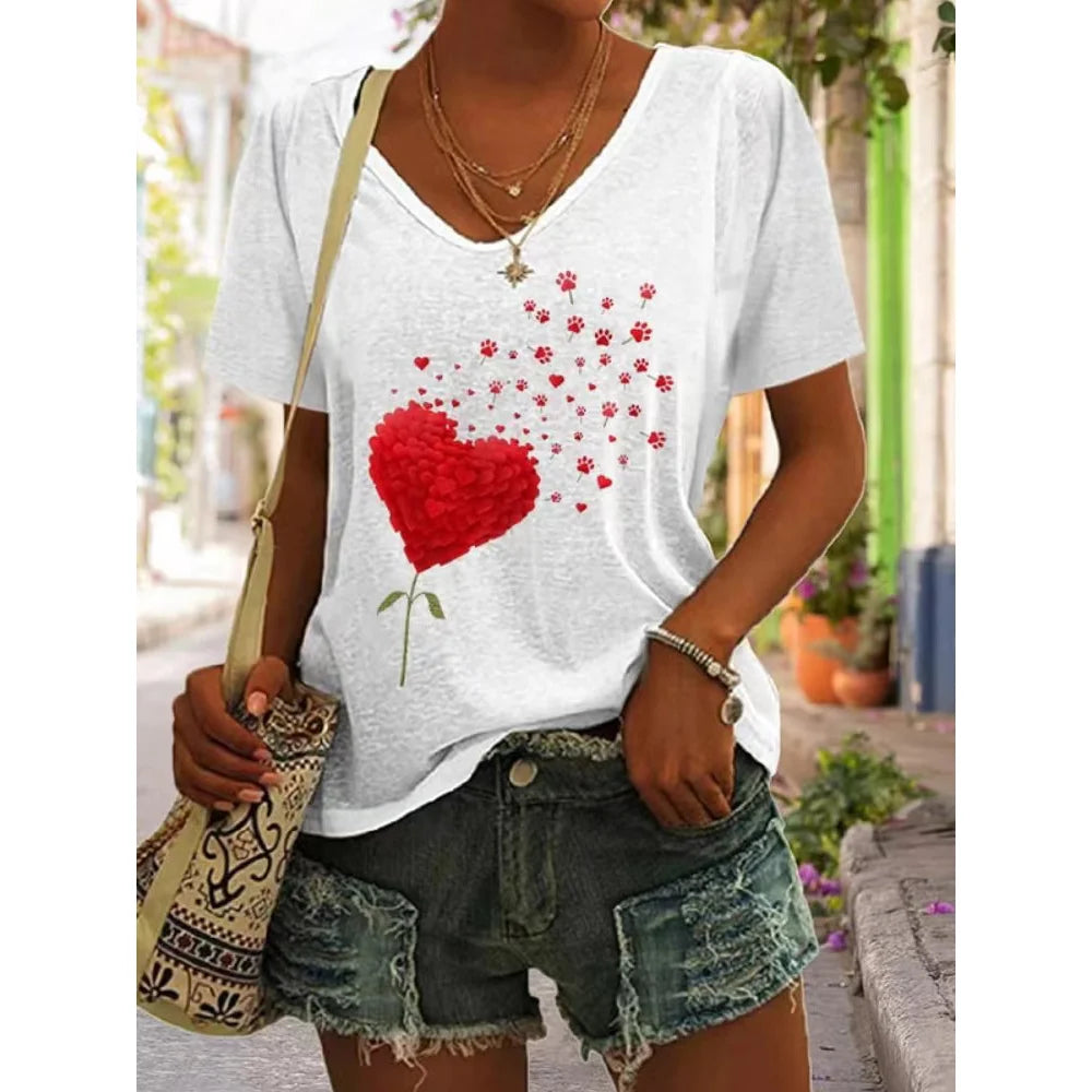 Fashion Ladies T-Shirt Short Sleeve Tops Heart Shape 3d Shirt Tees Girls O-Neck Oversized Apparel 2023 Summer Clothing Women's