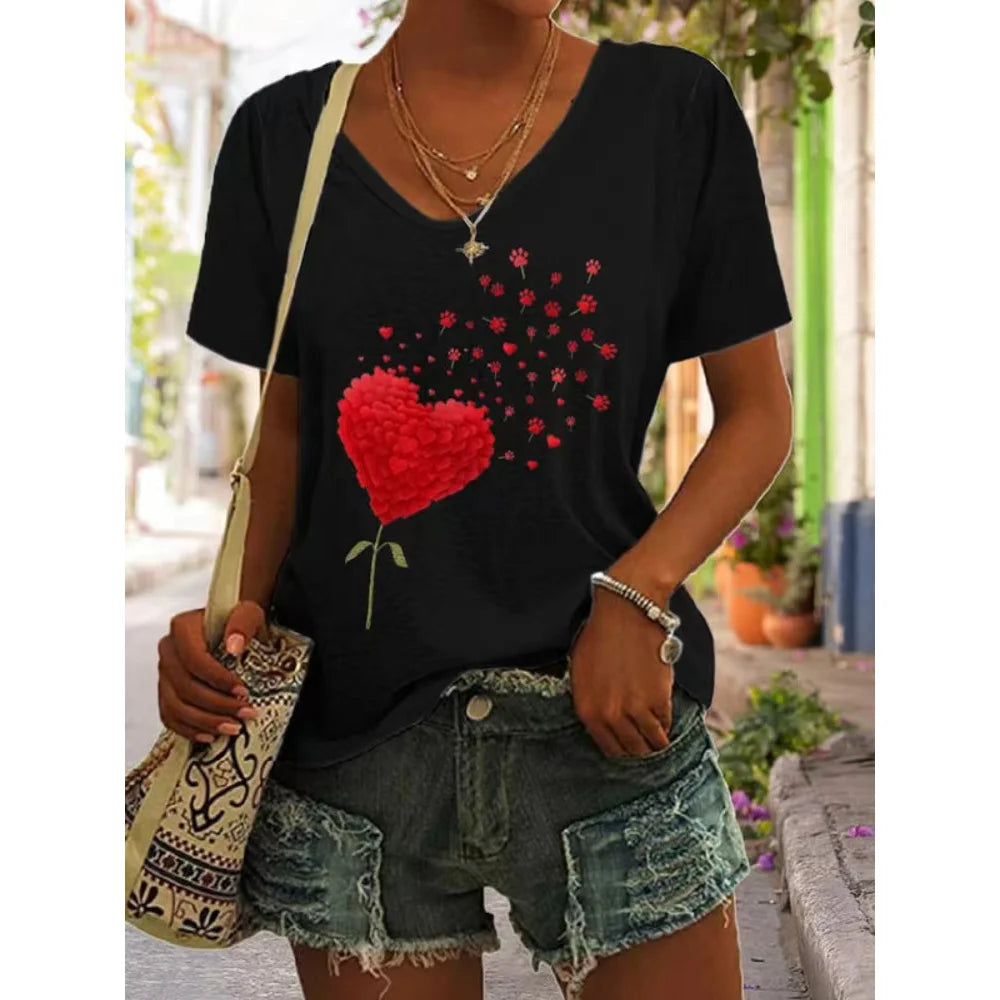 Fashion Ladies T-Shirt Short Sleeve Tops Heart Shape 3d Shirt Tees Girls O-Neck Oversized Apparel 2023 Summer Clothing Women's