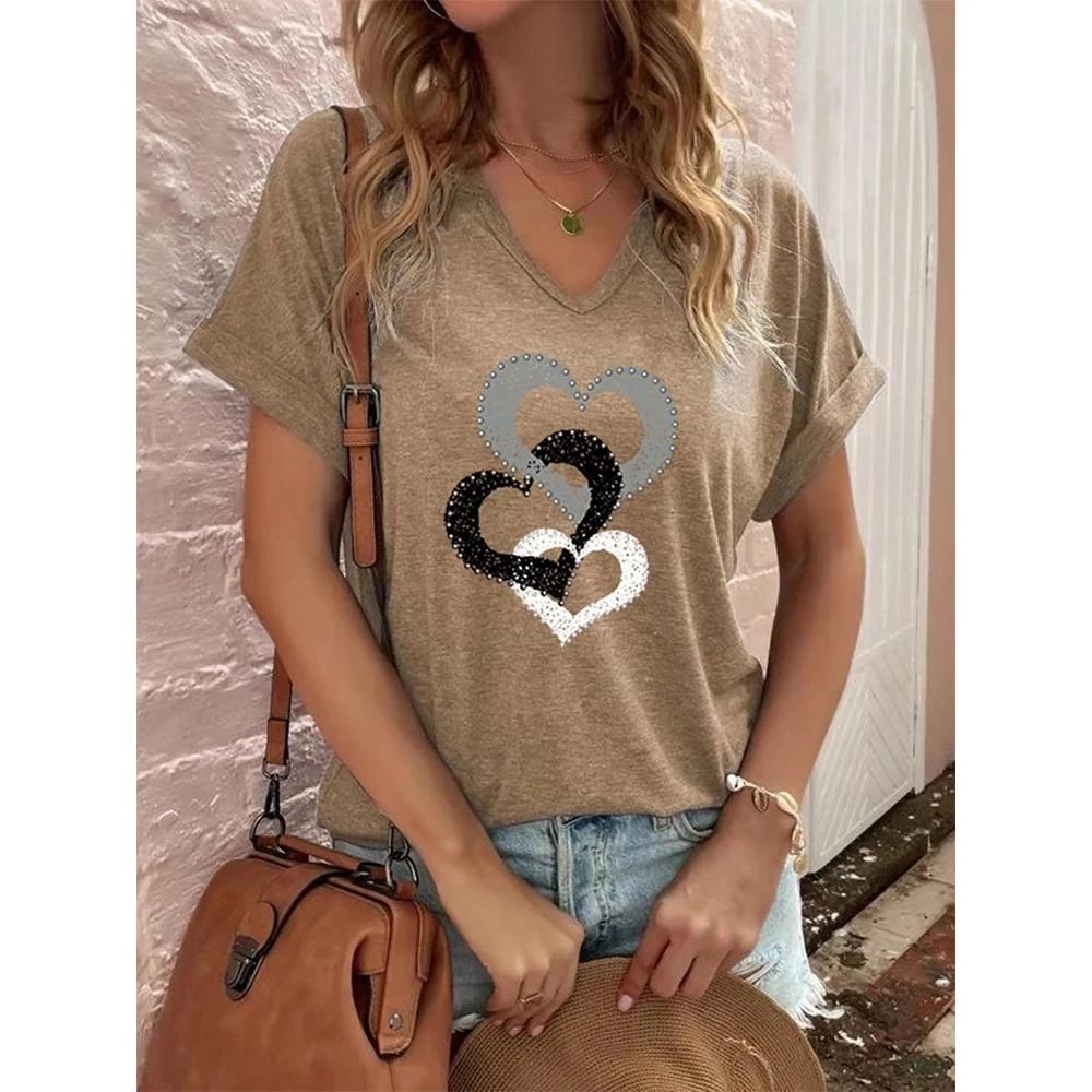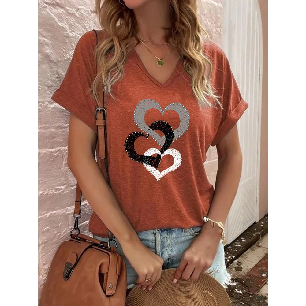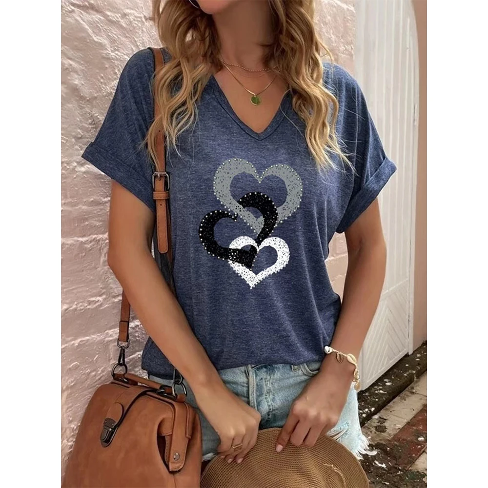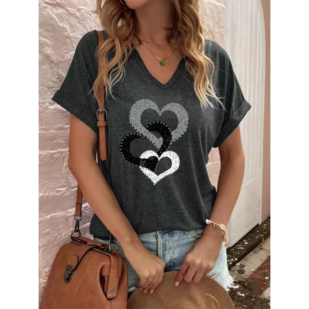 Fashion Ladies T-Shirt Short Sleeve Tops Heart Shape 3d Shirt Tees Girls O-Neck Oversized Apparel 2023 Summer Clothing Women's