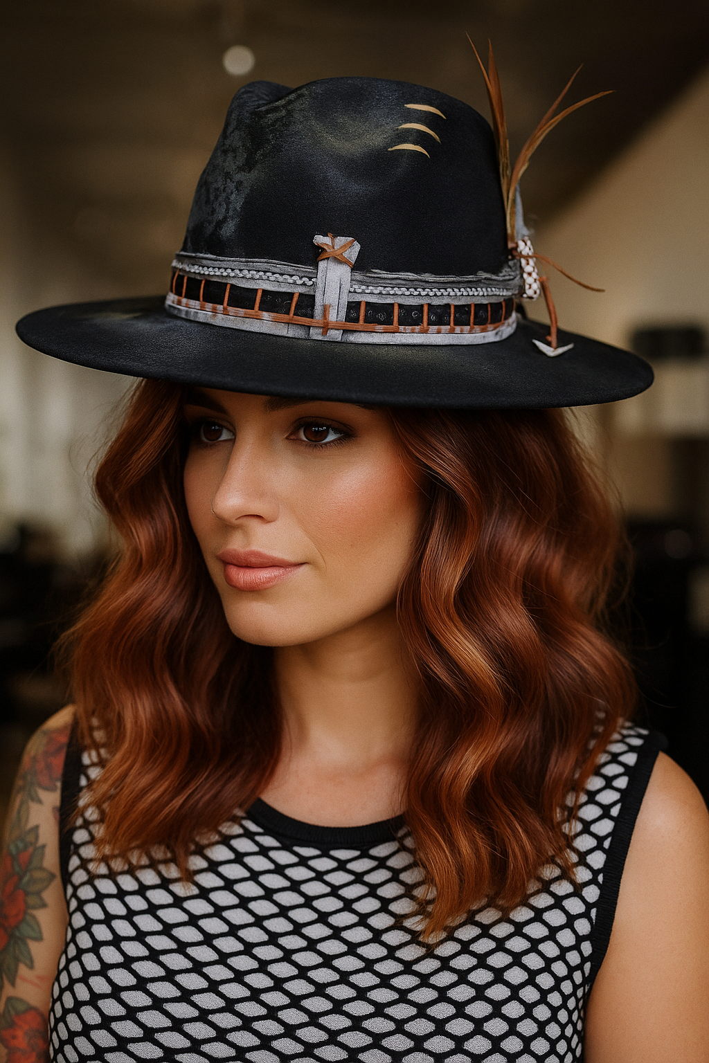 Inspired by loyalty, adventure, and the bold spirit of our Border Collie, Remington, this one-of-a-kind hat captures both rugged Western roots and artisan craftsmanship.