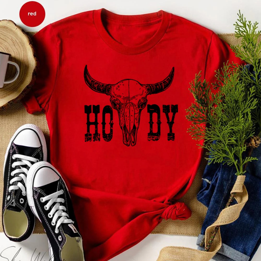 Retro Howdy Shirt Howdy Cow Skull T-Shirt Cowgirl Shirts Country Music Cowboy Western Tees Vintage Southern Style Country Tshirt