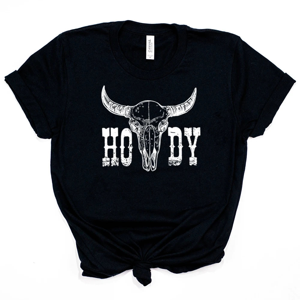 Retro Howdy Shirt Howdy Cow Skull T-Shirt Cowgirl Shirts Country Music Cowboy Western Tees Vintage Southern Style Country Tshirt