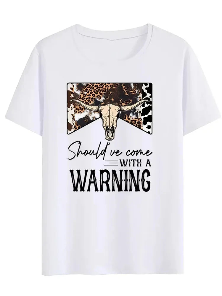 Should've Come with A Warning Print Women T Shirt Cowboy T-Shirt Western Country Graphic Tee Female Vintage Clothes