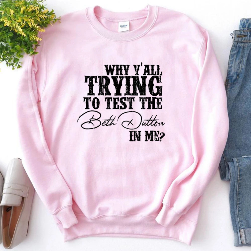 Why Y'all trying to test the Beth Dutton in me sweatshirt Yellowstone beth dutton hoodie Dutton Ranch Rip Wheeler sweatshirts