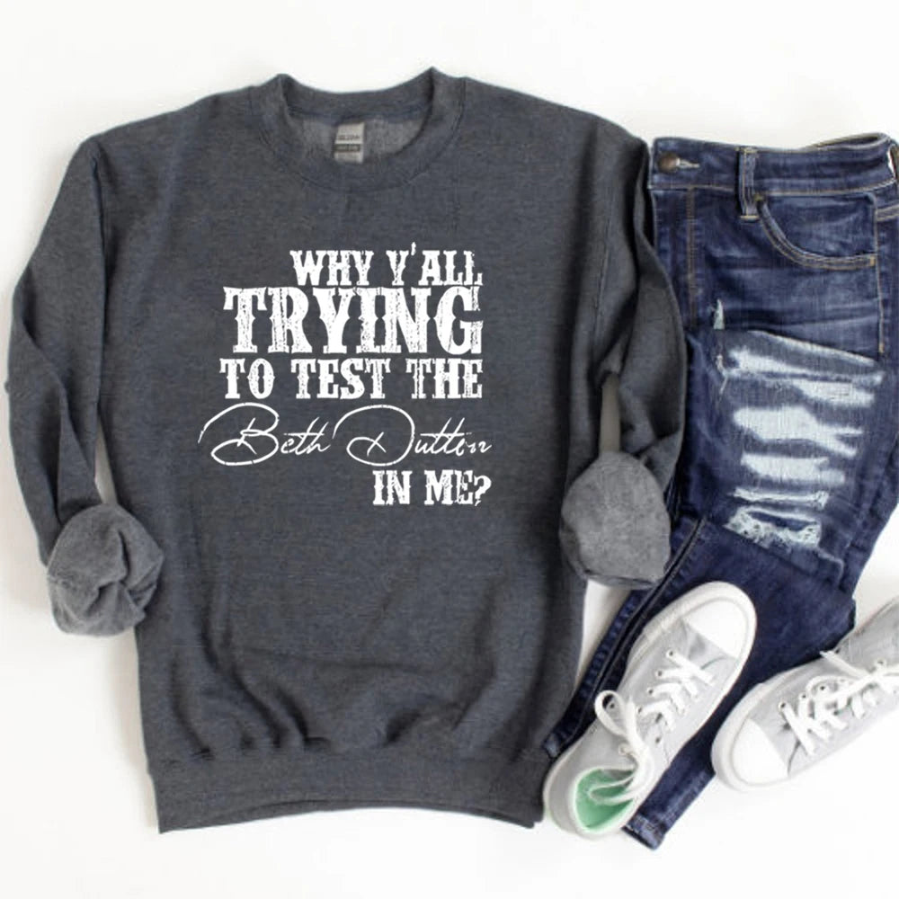 Why Y'all trying to test the Beth Dutton in me sweatshirt Yellowstone beth dutton hoodie Dutton Ranch Rip Wheeler sweatshirts