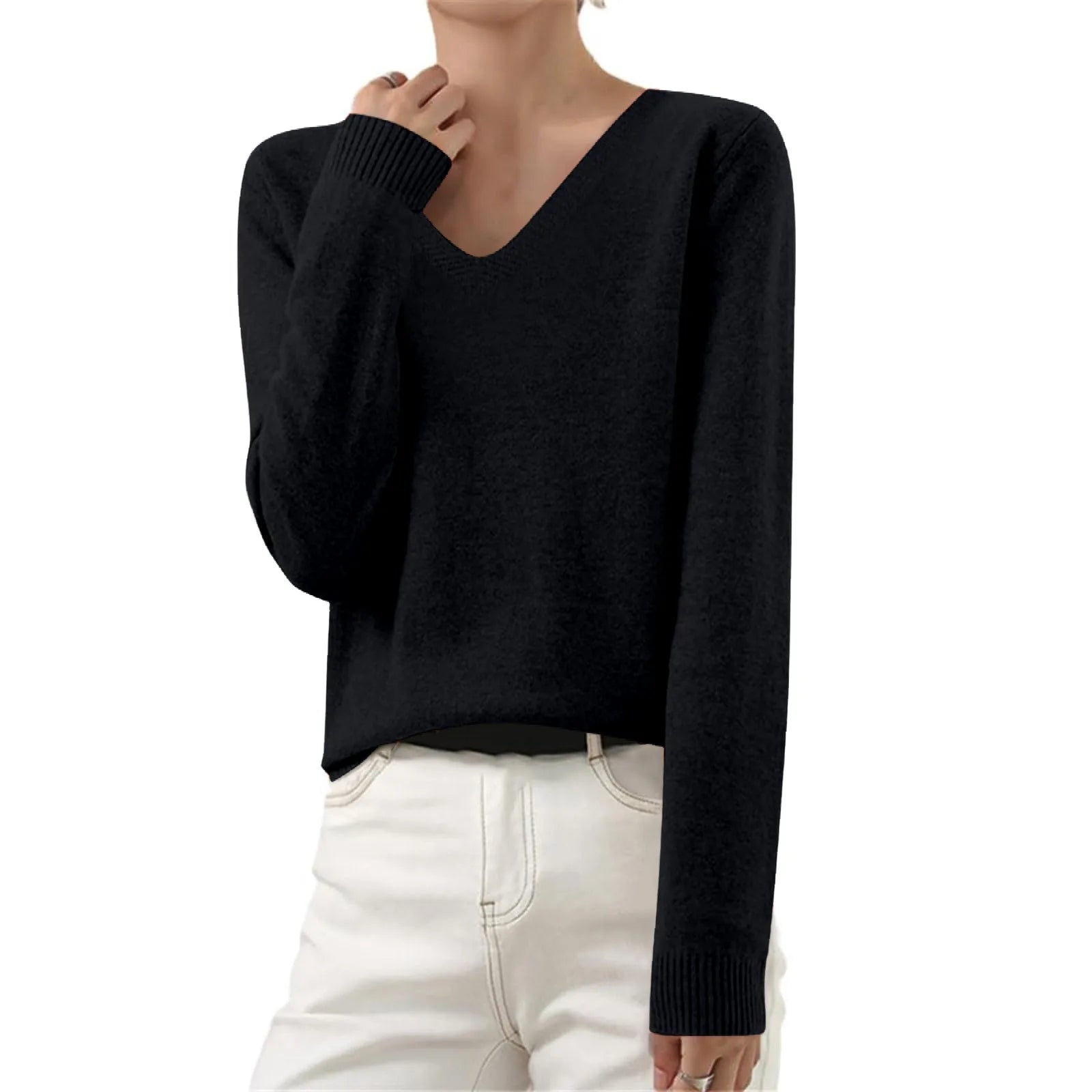 Women's And Winter Fashion Long-sleeved Basic V-neck Loose Pullover Sweater Top Hot products popular choice Showing Charm
