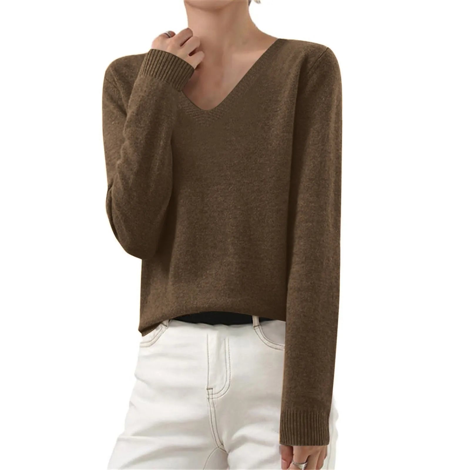 Women's And Winter Fashion Long-sleeved Basic V-neck Loose Pullover Sweater Top Hot products popular choice Showing Charm