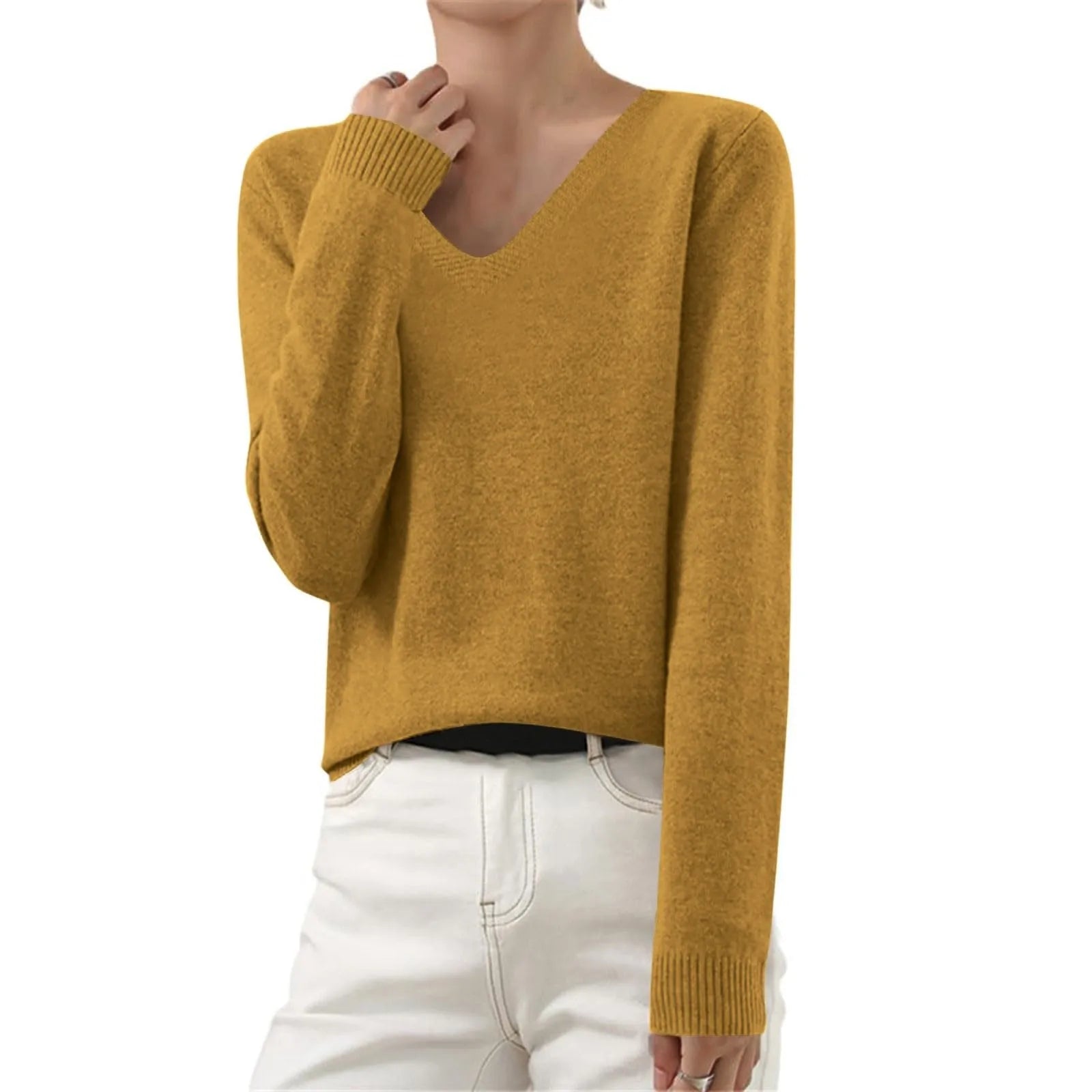 Women's And Winter Fashion Long-sleeved Basic V-neck Loose Pullover Sweater Top Hot products popular choice Showing Charm